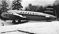 Apart from coffee and food, visitors were also offered aviation related souvenirs, and the chance to have their photo taken in front of the aircraft dressed as a captain. The cockpits were open to the public at first, with sound tapes to add a touch of realism, but G-AGRU suffered badly at the hands of youthful enthusiasm, and later cockpit visits were only enabled when guided. An extra cockpit section was obtained at one point to help restore G-AGRU’s interior. At some point the three aircraft were named after famous Dutch Aviation pioneers, with G-AGRU becoming “Henri Wijnmalen”, G-AHPB becoming “Marinus van Meel” and the name “Floris Albert van Heyst” was given to G-AGRW. Before coming to Soesterberg G-AGRU had had a varied career. Built for BEA in 1946 as a type V.498 Viking, construction number 112 was given the name “Vagrant”. In June 1948 she was converted to a type V.657 for British West Indies Airlines (BIWA) and re-registered as VP-TAX was now named “R.M.A. Barbados”. She returned to England in April 1955 to fly for British International Airlines Ltd and was later sold to Channel Airlines in April 1959 for which she flew until landing at Soesterberg in 1964. A bit of background on the name she was given: Henri Wijnmalen was one of the first Dutchmen to gain a pilot’s licence in France. With his own Reims-built Farman he set a world altitude record of 2800 meters on 1st October 1910, he was then 21 years old. Later he flew the same aircraft to win a price of 50.000 guilders for winning a race from Paris to Brussels (to be completed within 36 hours) that was held by the French Automobile Association, completing the journey in 30 hours and 10 minutes. He became a well-known aviator in The Netherlands, later becoming director of the ‘Trompenburg’ factory where ‘Spijker’ cars were built, and in later years ‘Spijker’ airplanes. In later years Henri Wijnmalen moved away from aviation and became an expert in horse racing. He settled in the UK on a manor in Twyfford, Berkshire and passed away in 1964, at the age of 74. The ‘Avia Resto’ restaurant remained in existence until late 1979 or early 1980. After John Bouvy died the restaurant was closed and the aircraft sold to the Cosford Aerospace Museum. Not all three aircraft actually ended up in Cosford though, to pay for shipping G-AGRU to the museum the two other Vikings were sold to a German museum. G-AHPB was painted in LTU colours with the registration D-BABY and ended up in the Technorama Museum at Winterthur, Switzerland, after being displayed at Dusseldorf Airport for a few years. She was scrapped in Switzerland. The second Viking that went to Germany eventually ended up next to a McDonalds restaurant in Schwechat, Austria, painted in Austria Airlines colours. She was first displayed near the terminal building, on a roof, at Vienna International Airport (click here for a photo), but was finally brought down and restored by an Austrian Airlines crew before moving over to the fast-food restaurant. In 2013 G-AGRW was removed from its place next to the McDonalds and since then has been on display at Bad Vosslau Airport. Click here for a photo of the aircraft from January 2013. Over time the airframe deteriorated, at one point the fin folded over after a storm. In 2023 the airframe was taken apart and moved to its new home, Blackbushe airport in the UK, for a complete restoration. See https://www.blackbusheheritagetrust.com/ for more about this project.