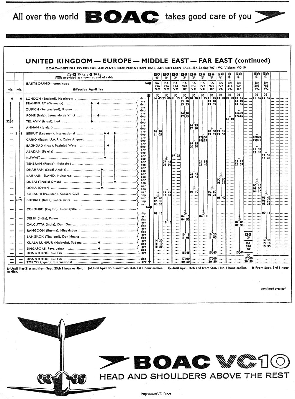 BOAC 1966 Summer Timetable