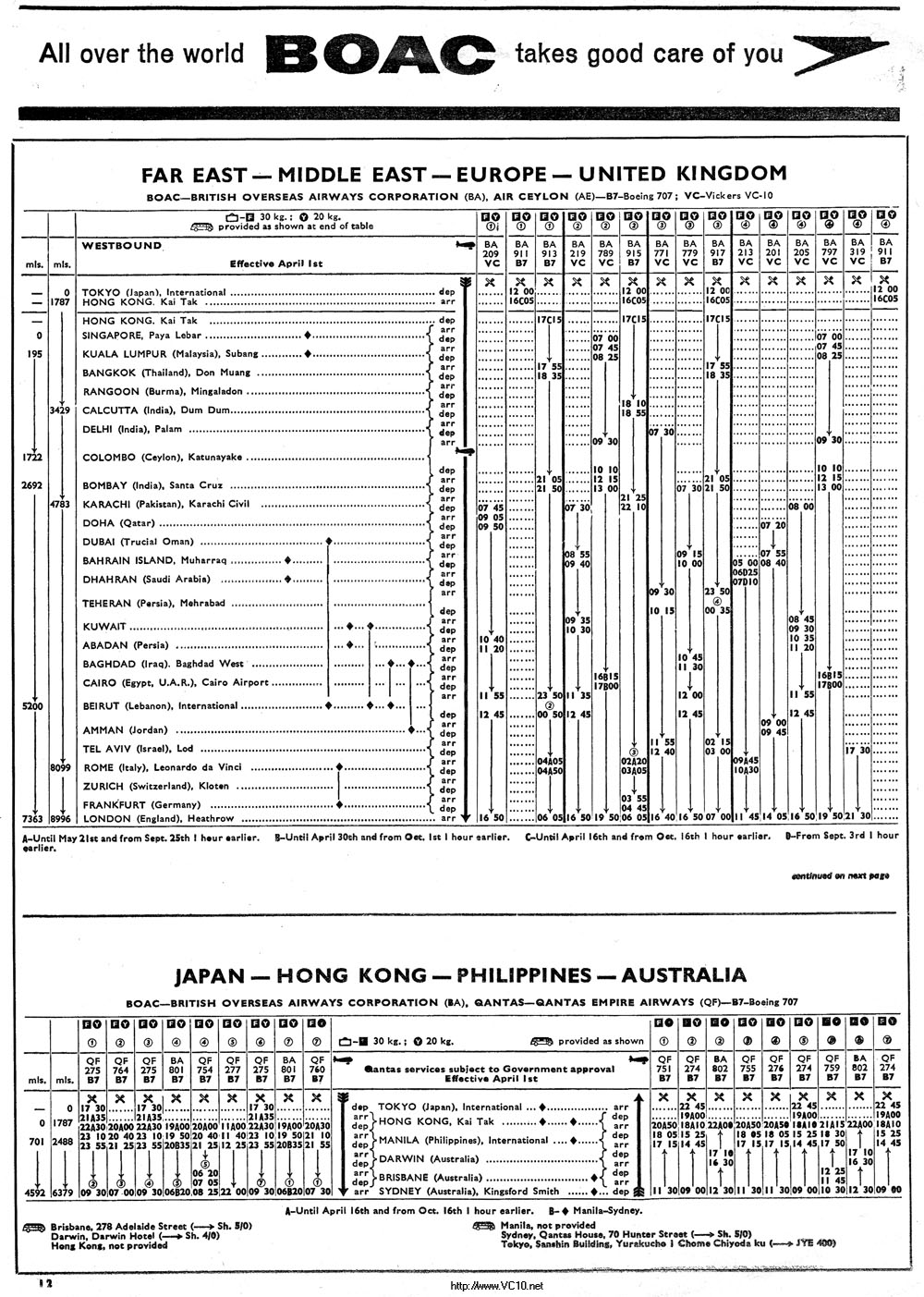 BOAC 1966 Summer Timetable