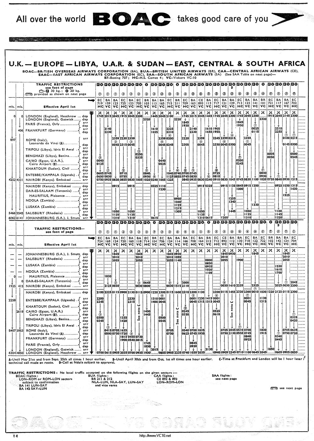 BOAC 1966 Summer Timetable