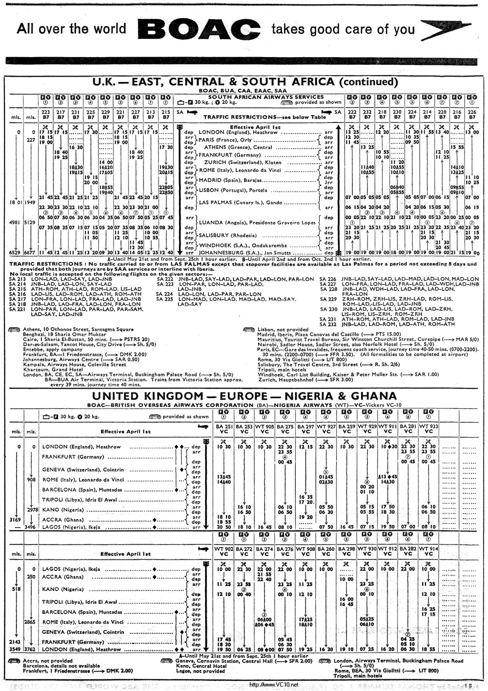 BOAC 1966 Summer Timetable