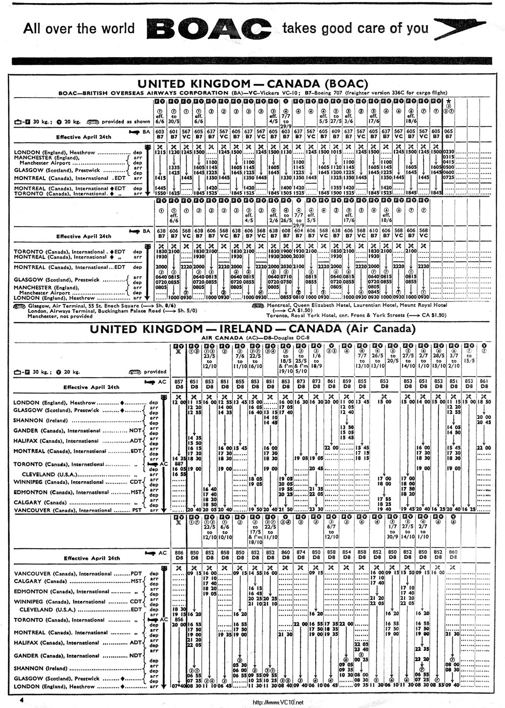 BOAC 1966 Summer Timetable