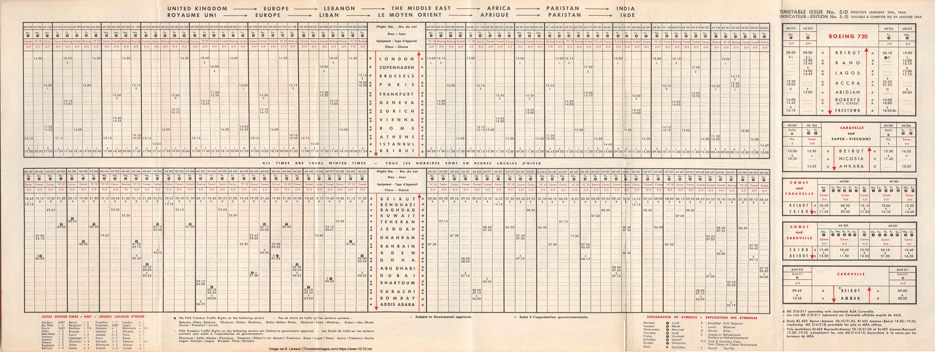 Middle East Airlines timetable January 1969 - page 1