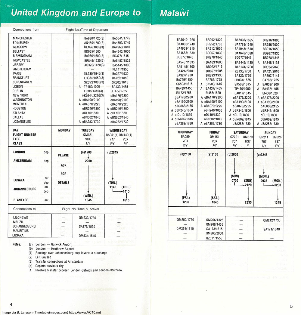 Air Malawi 03/78 Timetable - page 2