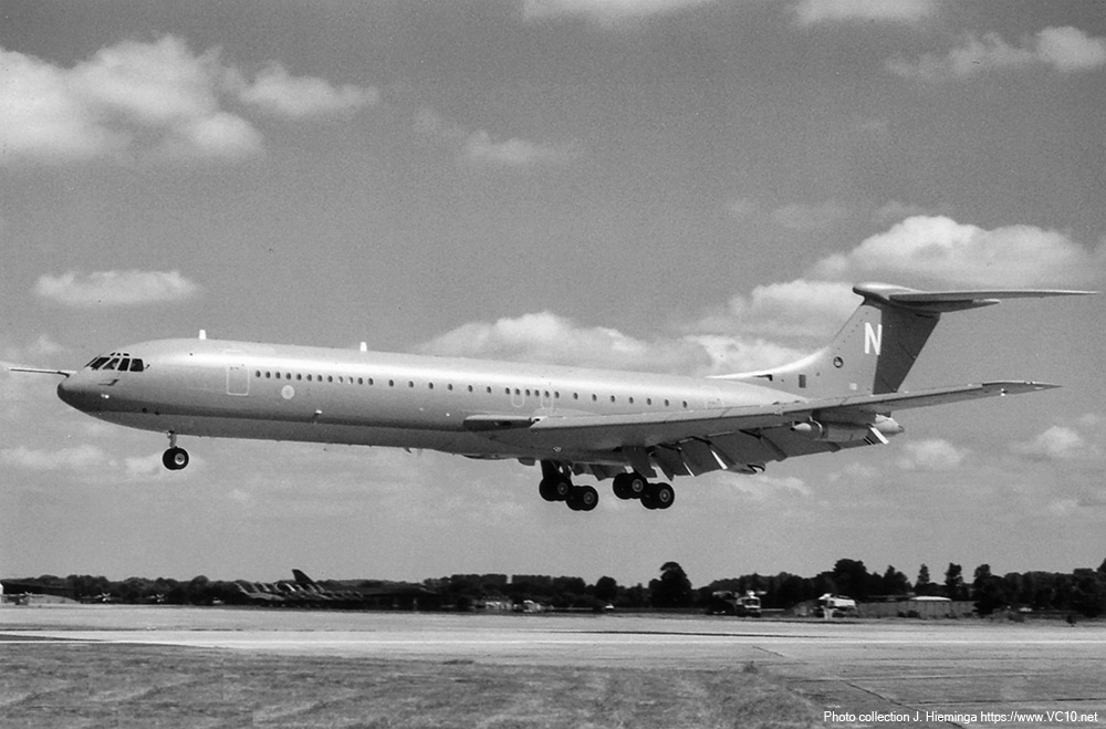 1312 Flight - a VC10 down South The present 1312 (In-Flight Refuelling) Flight was re-formed on 20 August 1983 at RAF Stanley on the Falkland Islands. Previous incarnations have operated Avro Ansons, tasked with transporting ferry crews and wounded airmen at the end of World War II, and Handley-Page Hastings and Vickers Valetta transports between 1954 and 1957. Moving to the newly opened RAF Mount Pleasant in 1986 the flight operated Lockheed Hercules aircraft at first but from 1996 on also borrowed VC10s from 101 Squadron to provide air to air refuelling capability around the Falkland Islands. The main task of the flight is to support the based fighters of 1435 Flight, currently four Eurofighter Typhoons, while also being tasked with air transport, search and rescue and maritime patrol. These tasks were shared between a single Hercules and a VC10, a job which has been mainly carried out by the single remaining K4 ZD241 over the last few years of the VC10's career. After ZD241's retirement in March 2013 both ZA150 and ZA147 have been seen at MPA and in August 2013 a Tristar was sent 'down South' to take over this tasking, bringing this chapter of the VC10's history to a close. 241 OCU and 55(R) Squadron - Training VC10 crews The task of training crews to fly the VC10 for the RAF was assigned to the Operational Conversion Unit or OCU. This system grew out of the WWII Heavy Conversion Units or HCUs, which trained fledgling air crew members to fly the heavy bombers. The OCUs provided ground school, simulator training and flying training on type to convert the crew members to the job of operating the VC10. Starting out with the basics of how the aircraft functioned and how it flew, the OCU would also cover type specific tactics and roles. The training started out (for flight crew members) in a manner not that different from the civil 'type rating training', but once the crew member had become accustomed to the size and weight of the type, the training could expand into emergency procedures and the specifics of carrying military cargo or, in the case of the K2, K3 and K4s, providing air-to-air refuelling facilities. In October 1993 the OCU for the VC10 was renumbered to 55(R) Squadron. Initially, training continued as before but in July 1994 the flying part was devolved to the squadrons, with 10 Squadron training crews for the air transport role and 101 Squadron carrying out the needed flying training to deliver AAR crews. 101 Squadron also carried out the initial training for 10 Squadron crews who needed to add delivering fuel to their capability until 10 Squadron had enough instructors of their own to provide this training. 55(R) Squadron continued to deliver groundschool and simulator sessions, but over time the simulator instruction was also handed over to the operational squadrons with 55(R) remaining as a groundschool provider. Retirement The final year of VC10 operations showed that the retirement plans as explained in June 2012 didn't completely work out in reality. In June 2012 there were four C1Ks still active alongside the single K4 (ZD241) and the four K3s. XV104 was retired a week after the 50th anniversary and XV106 and XV108 were flown to Bruntingthorpe in November 2012. That left the four K3s alongside K4 ZD241 and C1K XR808 to carry out the tasks alotted to 101 Squadron. One of these tasks was the posting to the Falkland Islands and ZD241 spent most of its last year here until its retirement in March 2013. In that same month K3 ZA149 was also flown to Bruntingthorpe for scrapping, indicating that the K3s would not stay together until the last month of operations. Everything went quiet for a few months after these two retirements until in July the news emerged that XR808 would not land at Cosford as had been announced earlier. Instead it would end up at Bruntingthorpe and initially it was thought that this was the nail in the coffin for the longest serving VC10 in the RAF. Just a few weeks after this shock and with the future of the remaining three aircraft insecure, an announcement by the chairman of the Classic Air Force brought good news. This led to ZA148 being flown to Newquay in August 2013 for preservation there. This left two VC10s still on active duty and obviously the number of sorties flown by the type went down because of this. ZA147 and ZA150 both spent time at Mount Pleasant airfield during these last months. On 20th September 2013 the last operational sortie of the type was carried out by the two VC10s. Leaving Brize together they carried out refuelling operations before splitting up and overflying various RAF bases individually. They arrived back overhead Brize Norton in formation and landed one after the other, bringing to a close a 47 year career. On 22nd September ZA147 starred in an enthusiasts day at Brize, together with a Tristar and a C-130K, two other types that would be leaving the RAF soon. The day after news emerged that ZA150 had been bought by the Brooklands Museum and on 24th September this airframe made its final landing at Dunsfold. On Wednesday 25th September the curtain closed when ZA147 left Brize for the last time and, after a touch and go at Birmingham Airport, landed at Bruntingthorpe at 16:02LT. RAF VC10s