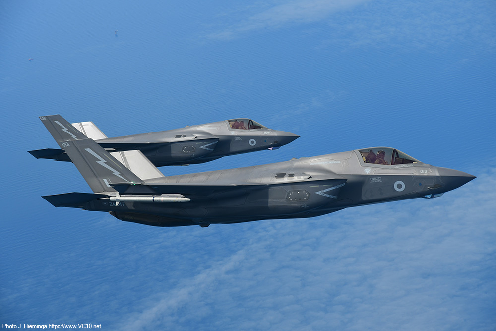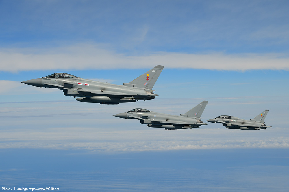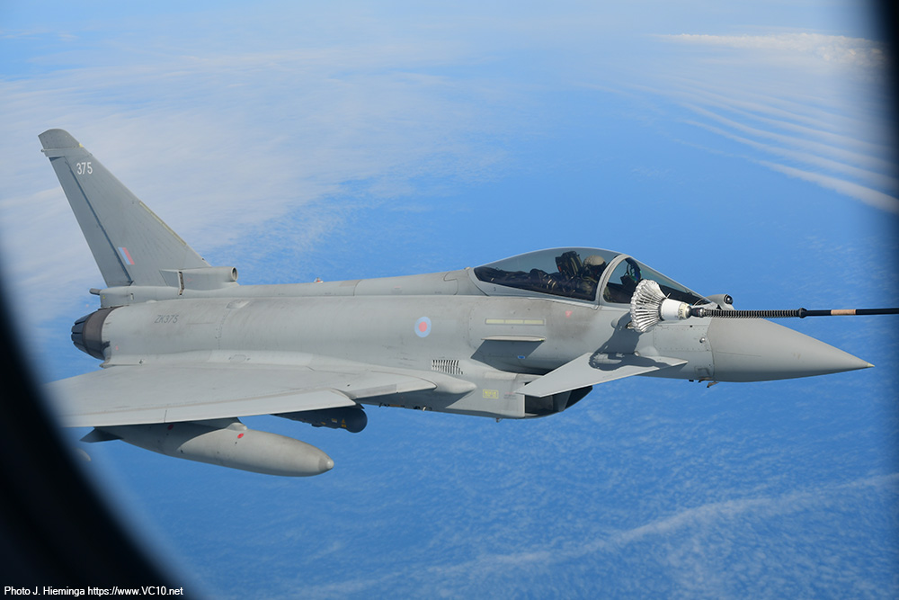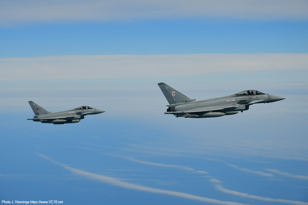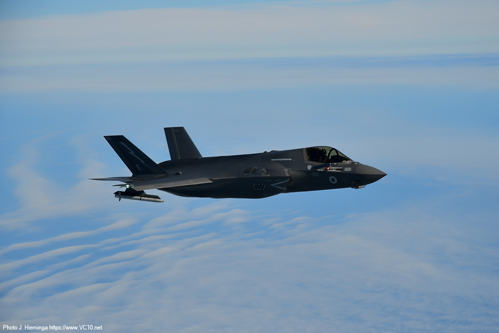 The crew shared some details of the expected trade with us at the start of the flight and first to show up were a pair of F-35s from RAF Marham. After taking up a position just off the left wingtip they were cleared in to the refuelling hoses. They quickly established contact and spent the next five minutes sitting there off the side of the tanker happily taking on a couple of tons of fuel each. The main purpose of the visitors on this day was retaining currency in AAR operations but refuelling fighters comes with the additional benefit of more training time in the air and fewer take-offs and landings at their base. Once I had seen the process a couple of times I was reminded of the basics of AAR operations, which was later confirmed and expanded upon by the Voyager's aircraft commander. The fighters approach at an altitude 1000 feet below that of the tanker until they establish visual contact with the tanker. They can then convert the excess speed that they used to catch up with the tanker into a bit of altitude to end up alongside the A330's left wingtip. The refuelling coordinator on the flight deck, who can keep track of the various aircraft around the tanker with several cameras displayed on the screens in front of him, clears the fighters to the right or left hose and keeps track of fuel offloaded, the time spent doing this and a number of other details. After receiving the allocated load of fuel, a fighter will move back to disconnect from the hose and transfer to a position on the right wingtip, awaiting the rest of the formation. Once all the fighters in that formation have refuelled and are in formation off the right wingtip, the are cleared away from the tanker and they will then climb another 1000 feet to clear the tanker, accellerating away from it in the process. The weather over the North Sea included some low cumulus clouds and patches of stratus low over the sea but mostly clear skies so that for a lot of the flight the fighters were clearly seen against the blue of the sea, sometimes dotted with wind turbines. The A330 stayed inside a designated area, flying an elongated holding pattern in a roughly east-west direction. Because of this, the fighters were brightly illuminated by the morning sun on one side of the track, and partially backlit against it on the other half, both situations offering their own fantastic photo opportunities. During a turn a refuelling fighter on the left side appeared to move down relative to the tanker (not completely incorrect... but the difference in indicated altitude is negligable) and this provided some lovely images against the backdrop of the North Sea wind farms. The crew looked after us very well, supplying tea, coffee and a hot breakfast to keep us going. There were regular messages from the flight deck announcing some breaks in the programme as the tanker remained on station without any fighters to supply, or announcing that a new set of customers was on the way. Once the first two waves of F-35s had finished their job, some Coningsby based Typhoons took over with up to three of them joining us at a time. Three Marham based F-35s formed the last wave of customers. Air-to-air refuelling is seen by a lot of crews as 'the sport of kings' and they appear to be well-versed in this sport. The time needed to move into position and set up a succesful 'prod' was minimal for the visitors we encountered. Any aircraft displaces the air around it and the movement of the refuelling basket is influenced by this, something most clearly seen on the F-35 as what looks like an invisible bow wave sometimes appeared to push the basket away. Pilots try not to chase this basket but use references on the tanker to get themselves in the correct position. It takes training to get good at this sport and to keep yourself at the required level. What was on offer today was a very stable tanker in brightly lit conditions. I imagine the situation will be different when operational pressures, night, clouds, turbulence and other distractors can throw a spanner in the works. Having refuelled fourteen fighters (some of which had come back for seconds) in the space of just over three hours, having supplied almost 36,000 kg of fuel during the nine or ten loops around the racetrack pattern, it was time to reel in the refuelling hoses and return to Brize. The slightly longer return flight transited across the East Midlands, turned south towards Cheltenham and looped around Brize to land back on runway 25 after four and a half hours in the air. Procedures post-flight were some of the quickest I have encountered but that could be due to the fact that there was no baggage to collect, no security to go through, leaving only some quick photos in front of the airframe to delay the bus trip back to the terminal. It was a great way to spend a morning and I cannot thank the 10 Squadron organisation who organised this trip enough! The six-strong crew on the aircraft were great and, along with the escorting officer and all the personnel on the base who were involved, they also deserve praise. While it was no VC10 (I had to say that...), this experience has shown me first-hand how a tanker is a very valuable asset within the RAF, how the professionalism of the pilots and other crewmembers make something as tricky as linking up a high-performance fighter and a large airliner mid-flight look deceptively easy. And of course, I have a few photos to remind me of this wonderful experience.