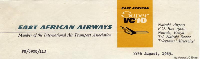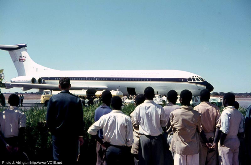 Perhaps ironically, the ultimate Super VC10 was not ordered by big operators like Pan Am, but by East African Airways. The EAA group was an amalgam of the aerial services of three nations - Kenya, Tanzania and Uganda. It mainly flew on the domestic African market in its early days, but grew to become the main African-based airline, operating routes around the globe. After 1970 business dwindled as competition from European based operators grew, and the loss of 5X-UVA in an accident in 1972 didn't help either. EAA struggled on until in 1977 it ceased operations as its financial backbone had disappeared. The four remaining VC10s were repossessed by BAC and eventually went to the RAF. This website shows various images of East African Airways aircraft and sceneries. For a while the EAA VC10s were known as 'Jambo Jets', somebody in marketing had thought of this to counter the introduction of BOAC's 747s which were known as Jumbo jets. 'Jambo' is the normal greeting in Swahili. The term wasn't very useful in P/A announcements and was quickly dropped again. Coincidentally (or perhaps related to this issue) the EAA staff newsletter was called 'Jambo news'.