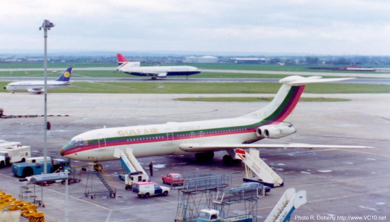 Today a major operator, Gulf Air is partly indebted to the VC10 for its position on the market. From 1969 on they leased VC10s from BOAC, but by 1974, Gulf Air bought them off the shelf when BOAC sold off their fleet of Standard VC10s. Five airframes were used and these formed the backbone of a large scale route structure expansion, although A4O-VL also spent some time being leased to Air Ceylon. After a hectic three year operation the VC10s were sold off again, this time going to the RAF for conversion.