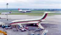This company acquired their VC10s through the merger with BUA, getting four airframes as part of the deal. The VC10's were repainted and given names of famous 'Lochs' in keeping with British Caledonian tradition. They flew in this guise for three years, mainly on BCal's South American routes, after which they were sold off one by one. In 1971 fleet changes were announced, the company would rather standardise on the 707s, and a sales brochure was drawn up for the VC10 fleet (click to open). Eventually, G-ATDJ went to the RAE in February 1973, G-ASIX to the Omani government in October 1974 and G-ASIW followed in November 1974 going to Air Malawi. G-ARTA's accident in 1972 sealed her fate before a potential new owner turned up. Dave Thaxter has set up a wonderful tribute website dedicated to British Caledonian.