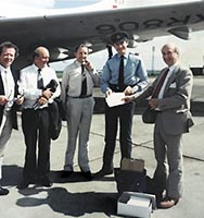 These recollections of the VC10 were written by Sir George Edwards, OM, CBE, FRS, on the occasion of the 25th Anniversary of the first flight of the VC10. To commemorate the event a VC10 C Mk1 of 10 Squadron flew a group of ex-Vickers employees and special philatelic covers (more on those at the bottom of this page) on a flight that culminated in a fly-past salute to Weybridge. British Pride Whatever the traumas that beset us with the VC10 during its early years - and there were plenty - seen today, 25 years on from the first flight of the prototype from Brooklands at Weybridge, it continues as a proud and productive symbol of British aviation capability - now serving exclusively with what I have always believed to be the most important of all of our customers - the Royal Air Force. Scarcely a week goes by without us seeing the VC10 C Mkls of 10 Squadron on our television screens literally 'flying the flag' with HM The Queen and other members of the Royal Family, the Prime Minister and senior members of HM Government throughout the World. At the same time, there are the hundred and one other unseen and unsung tasks that these 'multi-mission' transports perform for the benefit of the nation - plus the 'force multiplier' activity of the VC10 K Mk2 and 3 strategic tankers of 101 Squadron. And both versions will, they say, be flying well into the 21st century. Difficult Conception Why were so few built? The reason starts one aeroplane before the VC10. The V1000 was a military transport based on Valiant design philosophy. We conceived it in very close cooperation with BOAC (British Overseas Airways Corporation). It was the first airliner with what was to become the universal standard in the first generation of big jets - six-abreast seating with a centre aisle - and thus had a large diameter fuselage for those days. It had a very difficult airfield performance to meet - and nearly all the aeroplanes that we have designed in this country have been bedevilled by having to meet a short airfield performance requirement - which is something the Americans never seem to be unduly bothered about. We were within about six months of the prototype V1000 being finished when it was cancelled, ostensibly because the RAF needed more large transport aircraft capacity much quicker than we could produce it, and there were Britannias available that were going to be made in politically-attractive Northern Ireland. This cancellation was, in my view, the most serious that the British aircraft industry has suffered since the end of World War Two. Whereas the military concept of having a strategic airlift force able to shift large numbers of troops and their equipment over long distances at high speed subsequently came into being through the VC10 which the Royal Air Force eventually acquired, this would have been available a lot sooner with the V1000. As far as the civil market was concerned, the V1000 stood in just the same position for us that the Viscount had a few years earlier - with a performance that was as good as, and indeed better I know, than the initial Boeing 707 which could not do the trans-Atlantic crossing non-stop, whereas the V1000 with its 15 per cent bigger wing could. Thus we would have been well set with the Viscount operating on short ranges and the V1000 on long ranges, with modern technology Rolls-Royce engines in both. The statements that were made in the House of Commons at the time of the cancellation were pretty pathetic, because one said that BOAC was quite content that it was going to manage the North Atlantic route with propeller turbines through the 1960s and there was no question of needing a jet aeroplane. Reality was predictably and quickly quite the opposite. I think BOAC had really wanted to buy aeroplanes that other major World airlines were operating because it is much safer to be in competition with common equipment than where you have got some exclusive gleaming monster which might be all right, but nobody else has it. This means that they were leaning towards American aeroplanes pretty well all the time. Tough Customer Specification Coming to the VC10 itself, it was designed to an exceptionally severe requirement written by, and exclusive to, BOAC. This notably necessitated operating from the existing airfield at Singapore to Karachi non-stop against a headwind, and getting in and out of Nairobi, hot and high. These were the kind, of conditions that the Boeing 707 certainly could not meet, because everywhere that it had been put into operation a substantial extension of the runway had been needed and, of course, as the years went by, all the major airport runways were duly lengthened. So we had to do better than the 707 - non different, but better - and the main job was to improve the lifting capabilities in order to meet these exacting conditions. Why Rear Engines? This really was the basic reason why we put the engines at the back. In order to get in and out of these small airfields we needed all the lift that we could generate. However, when you have the engines dangling under the wings like a Christmas tree - like the American types always did - you split up the landing flaps into small sections with a loss of lift at the end of each break, whereas if you have a ‘clean wing’ you can have completely continuous lift-generating devices on both the leading and trailing edges. The net result was that the VC10 landed about 20 knots slower than the 707 and got itself both into and out of these places with a full load. VC10 prototype G -ARTA maiden flight completed at