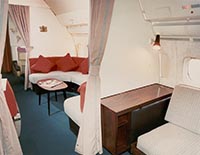 Both systems featured two pods, mounted below the engine pods, that contained the transmitters. Related equipment was installed within the fuselage, in the rear cargo hold which led to a restriction on baggage carried in this hold. The transmitters could be mounted or removed depending on need. The mounting points and internal connections remained on the aircraft. It wasn't until I started comparing photos that I noticed that these mounting points were on XV105, XV106 and XV108, but not on XR808. I don't have a complete list but the evidence suggests that XV102 and XV104 to XV108 were fitted with the necessary comms gear and mounting points. The system needed some time to warm up, but also, the crew needed to be careful when to select 'on' as it was powerful enough to damage other aircraft or singe the fence at the runway end. All four of the VC10's generators needed to be online and stable due to the system's power demands, and the fiercest heat, at the 'take off' setting, could only be sustained for five minutes maximum, before the Matador system would revert to its 'cruise' setting. It was usually switched off at a suitable altitude once the VC10 had passed the limit of the expected SAM system's envelope and the threat of a missile attack was considered to be gone. It took a bit of cooperation between pilots and flight engineers to manage everything, and of course flights with Yukon Jack or Matador fitted were never standard flights anyway. One captain remembers a day when time pressure scuppered the plans: "On 27 June 1985 I took Maggie to Milan Malpensa on Ascot 1107 and she was engaged for 3 days in an EU conference trying to sort out the UK’s contributions to the ‘Green Pound’. It was lovely weather at Heathrow when we left in the afternoon. XV105 was the aircraft that had the kit fitted. Mrs T was late arriving and Heathrow was busy. We taxied out at Mach 1 and were told to line up immediately from a runway intersection and Go, thereby jumping the queue of other aircraft waiting to take-off. Power applied and off we went. It was only at about 4,000 ft that the Eng said “Uh..... Uh...... Guess what? - We forgot to switch on the fan.” We didn’t bother to turn it on after that as we were soon at FL80. Thank heavens there were no terrorists around that afternoon." The inside of the aircraft was obviously also modified and featured a VIP fit that included more legroom and roomier seats. This fit may have varied between flights, as not every VIP passenger had the same needs. For Royal flights, the RAF would fit 'Modification no. 21' which was the full interior at VVIP level. Apparently this included pure wool gold coloured carpets throughout. BOAC had a similar kit that could be used to transform an airliner into a VIP-worthy mode of transport. Most if not all of BOAC's VIP fittings were later used to modify G-ARVF when it was sold to the UAE government. Around the time of the UK's first nuclear bomb tests, Operation Grapple in March 1957, Canberras had been modified to act as sniffers, so that they could take samples of the bomb's mushroom cloud. The evolution of the Cold War meant that a capability to collect high altitude air samples for detection of nuclear material continued to be useful. The Vulcan B.2MRR version as operated by no.27 squadron, originally modified for Maritime Reconnaisance, was the next type to be tasked with this and could carry two sampling pods below its delta wing. Between 1973 and 1982 these Vulcans, re-designated as SR2s, carried out the sampling task. After no.27 squadron stood down, the next type to be sent out to collect air samples was the VC10. At least two of the K3s were modified so that they could be sent out on this air monitoring role. Officially the role is called Meteorological and Atmospheric Research but the main job is collecting dust samples and monitoring and recording of airborne radiation. When needed, the K3 tanker is modified so that it carries two sampling pods on its wing stations instead of the refuelling pods, and a smaller instrument underneath the nose of the aircraft. Inside, an operator's station is provided on the left side of the cabin, on the rear face of the toilet cubicle.