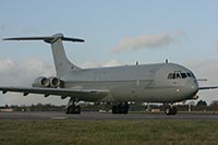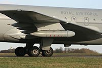 Special RAF Tasks and Equipment During its 47 year career with the RAF, the VC10 was used for its main task, carrying people and cargo, and later on of course air-to-air refuelling, but also acquired some specialised tasks with associated equipment. I have tried to provide a brief overview of some interesting aspects on this page. VIP Transport The first additional task that the VC10 took on was transporting VIPs. The most visible occasions were when HM The Queen would travel on a VC10 of course, but during the many years a variety of people were carried for many different purposes. The first issue when a VIP flight was laid on would be to select two aircraft (one standby) and prepare them for the flight. This involved a cleaning session, inside and out, but also an extensive inspection and replacement of any rotable component that was beyond 50% of its safe life. The idea was to minimise the risk of any unscheduled delay due to technical issues. Apart from a good clean, the outside of the airframe was also hand-polished to a nice sheen. The primary airframe would be fitted out on the inside while the standby airframe's cabin would remain empty until needed. After the necessary steps, both aircraft were airtested and if no snags were found, they were then available to carry out the flight(s). Several examples of VIP flights can be found in the timelines on the pages for XV105, XV107 and other RAF VC10s. Not all the C1s were the same. For a VIP flight you would want the use of some special equipment and as far as I can tell, not all the C1s were fitted with the same mountings and connections. One such modification was the one done at Wyton in the early 80s. This left the modified VC10s with secure communication capabilities and the visual confirmation of the modification was the towel-rail like SRIM antenna on top of the fuselage.