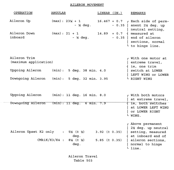 The Pilot´s Notes give the tailplane trim range and some numbers for aileron upset.